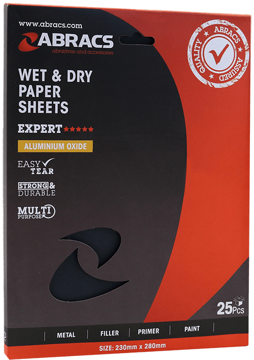 Waterproof paper sheets with flexible anti slip backing paper and resin bonded grit. Can be used wet or dry as a durable abrasive for hand finishing.