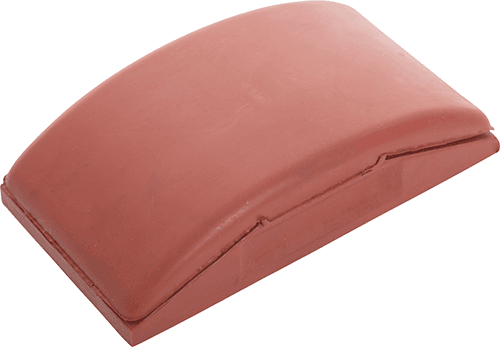 Dense rubber sanding block fitted with slots to attach the abrasive paper.