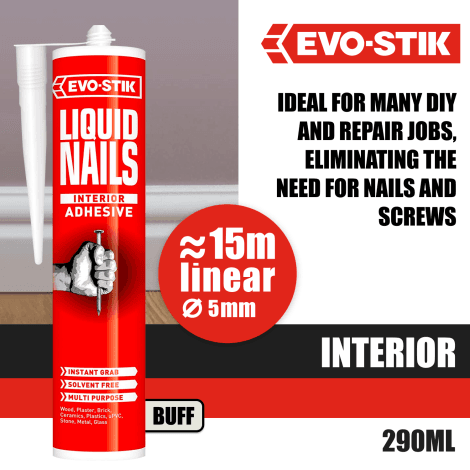 Evo-Stik Liquid Nails is an excellent choice for a variety of DIY projects and professional applications alike. The liquid consistency of this adhesive makes it easy to apply, ensuring even coverage and efficient bonding. From repairing furniture to installing trim, this adhesive delivers outstanding performance and ensures long-lasting results.