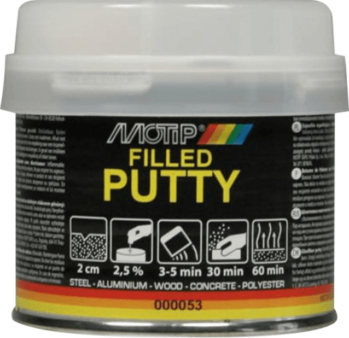 2 component fibreglass putty for filling surface holes in steel, aluminium, wood, concrete and polyester. Fibre putty is easy to sand and has excellent filling properties. Fibre putty offers high impact resistance and may be resprayed with all paints. It is resistant to chemicals and weather influences and can be applied in layers up to 2cm in thickness.