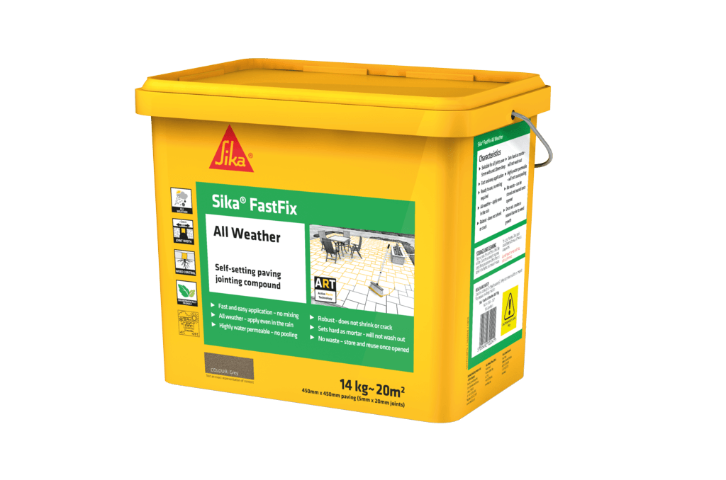 • Sika FastFix All Weather is a self-setting paving jointing compound providing the ideal solution to perfect pointing on paving, paths and patios.