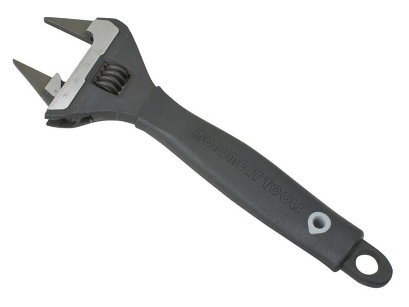 The Monument Thin Jaw Adjustable Wrench with a slim head for easy access to fittings, tap cartridges, nuts etc. in confined spaces. Ideal for the fitting and removal of radiator bleed valves, as well as tap cartridges where the complete removal of the shroud is not possible.