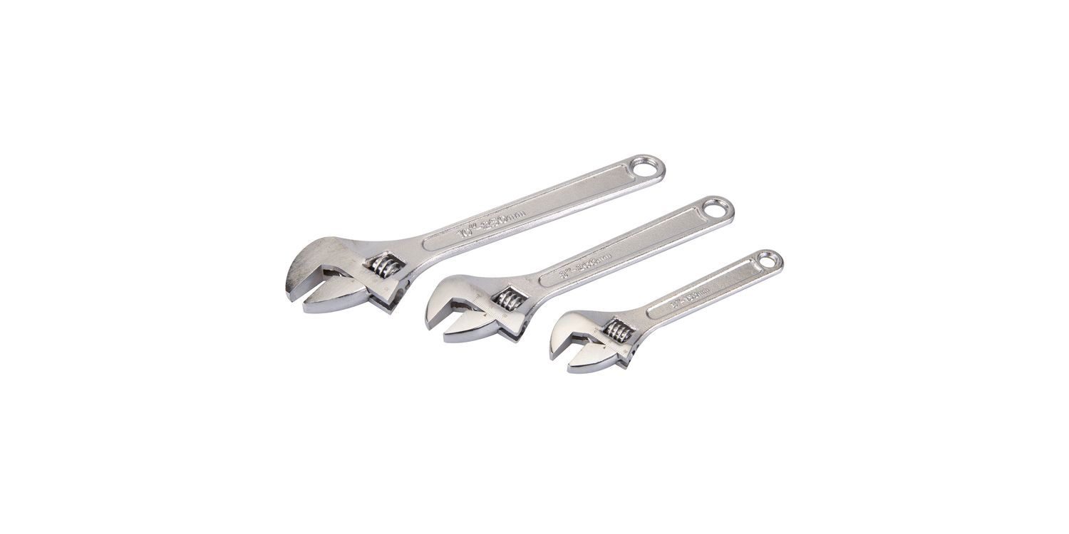 Drop-forged chrome-plated carbon steel. Polished jaw faces. Length x jaw capacity: 150 x 17mm, 200 x 22mm and 250 x 27mm.