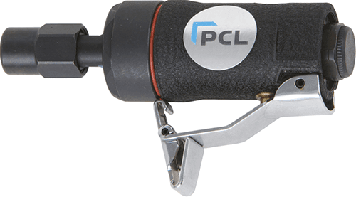 Allows the operator to reach into very small areas. Safety lever prevents any possible accidents. Rear exhaust to keep airflow away from the hand. High power motor designed for all tight grinding situations. 6 mm collet (3 piece design). Free speed 25,000 RPM, Weight 0.34 kg.