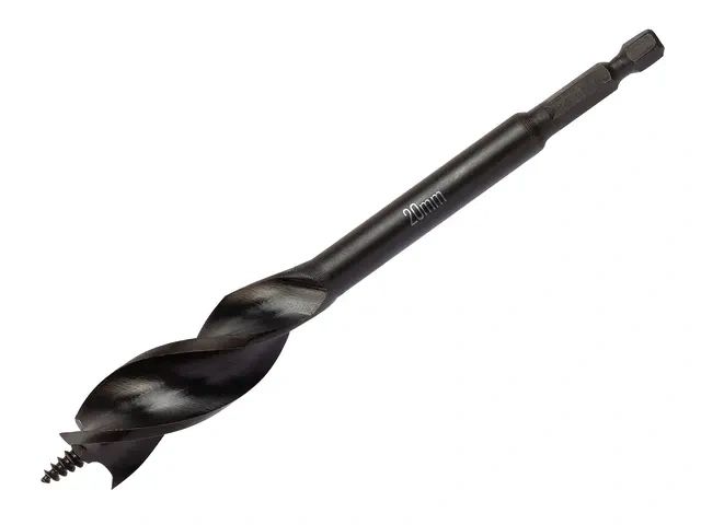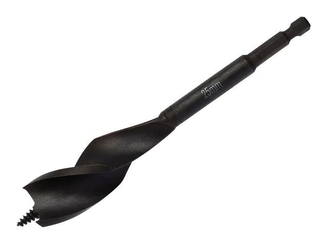 Fitted with a quick-change shank, fits standard quick-change extensions and 1/4in hex bit adaptors. For use with corded and cordless drills. Suitable for drilling holes in wood up to 100mm deep.