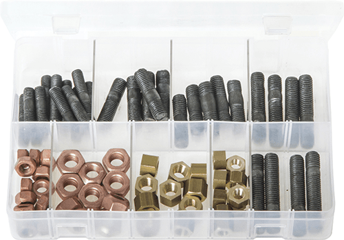 5 x Studs (Size x Pitch x Length): M8 x 1.25 mm x 37 mm, M10 x 1.25 x 37 mm, M10 x 1.50 mm x 38 mm, M10 x 1.50 mm x 52 mm, M10 x 1.50 mm x 55 mm.