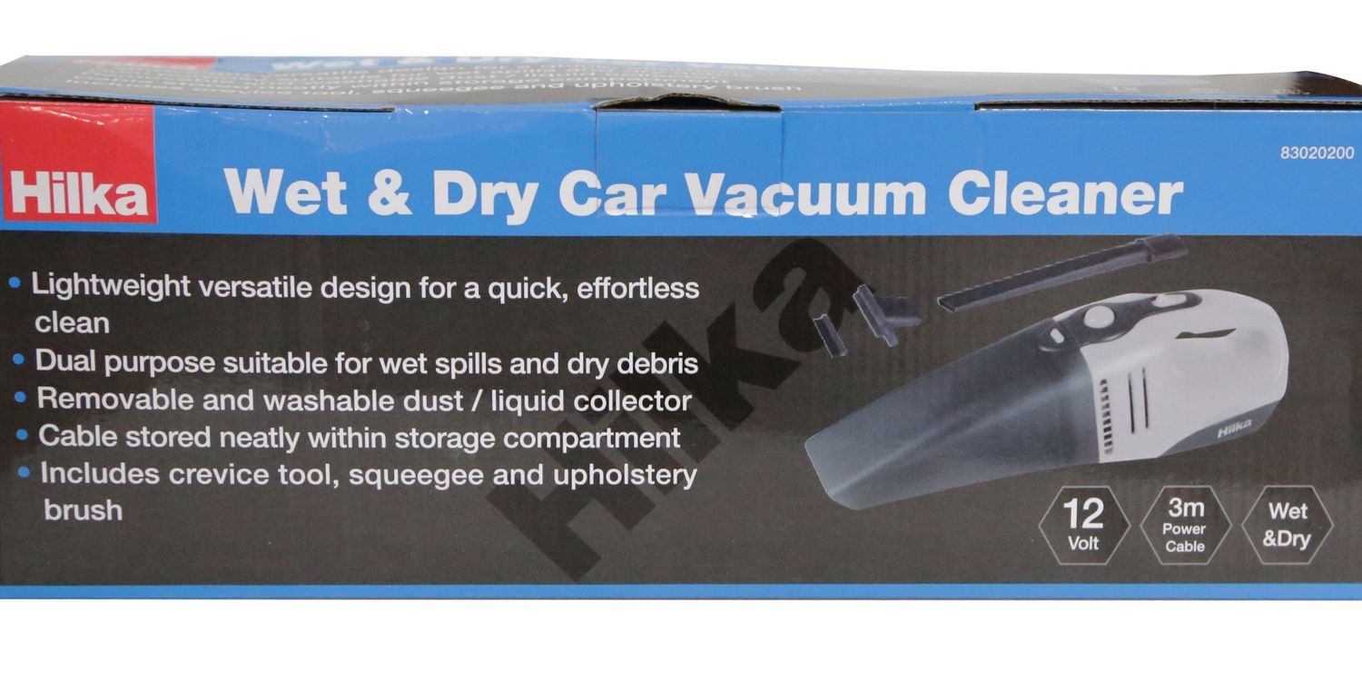 Lightweight versatile design for a quick, effortless clean with removable and washable dust/liquid collector. Dual purpose suitable for wet spills and dry debris. 3m power cable with 12v in car connector and cable stored neatly within storage compartment. Includes crevice tool, squeegee and upholstery brush.