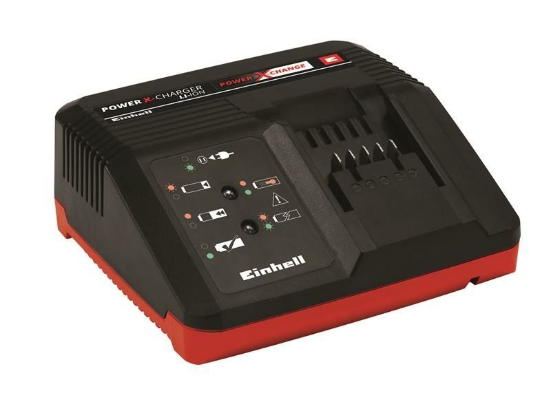 The Einhell Power X-Fastcharger charges all batteries from the Einhell Power X-Change system. 4 amp fast-charging technology ensures shorter charging times. For optimum charging and maximum safety, the battery is permanently monitored by an intelligent charging management system. There is a refresh mode for reactivating exhaustively discharged batteries. All up-to-the-moment information is provided by the 6-stage charging level LED indicator. The body features integrated suspension eyelets to easily hang on the wall.