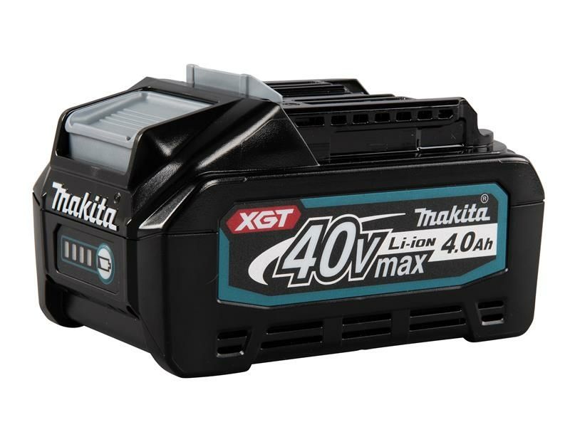 The Makita XGT 40Vmax Li-ion Battery has been built to withstand harsh environmental conditions. It has a robust construction, protected against dust with a splash-proof design and an integrated cooling system for maximum durability. Equipped with an LED indicator which shows the remaining capacity of the battery.