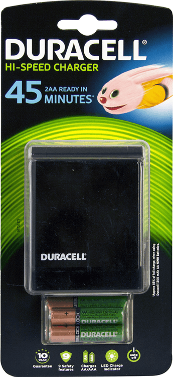 Medium Capacity NiMH: AA 1300 mAh, AAAA 750 mAh. 2 x AA ready in 45 minutes.