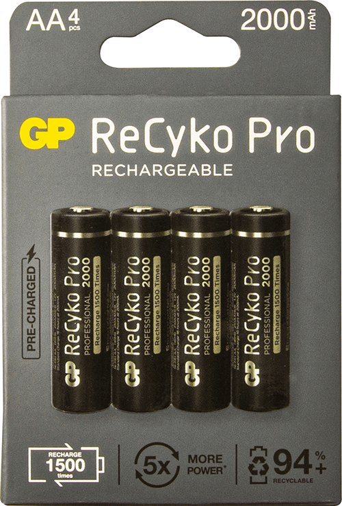 Unlike conventional NiMH batteries the new generation GP ReCyko+ Batteries come pre-charged ready-to-use right out of the pack! With their superior charge retention capability, once charged they hold 85%* capacity after 12 months left unused. These batteries can be recharged and used up to 1,000 times. (* Capacity retained is subject to full charge and storage conditions.)