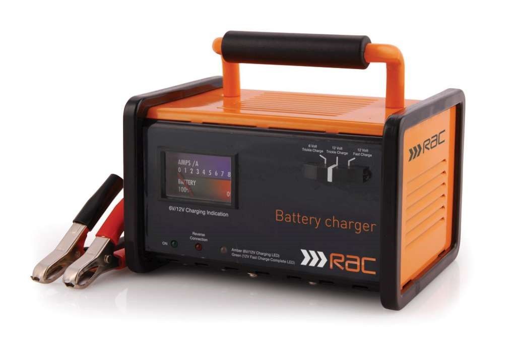 Sturdy construction metal case battery charger in metal case for regular use. Suitable for 6 and 12 volt car and motorcycle batteries. Charging rates of 12 amp RMS (fast charge) and 3 amp RMS (trickle charge). Protected against reverse polarity, short circuit and thermal overload. Automatically switches to float charge when battery is fully charged. The analogue meter shows the charging status. Suitable for petrol engines up to 4,000cc and diesel engines up to 3500cc.