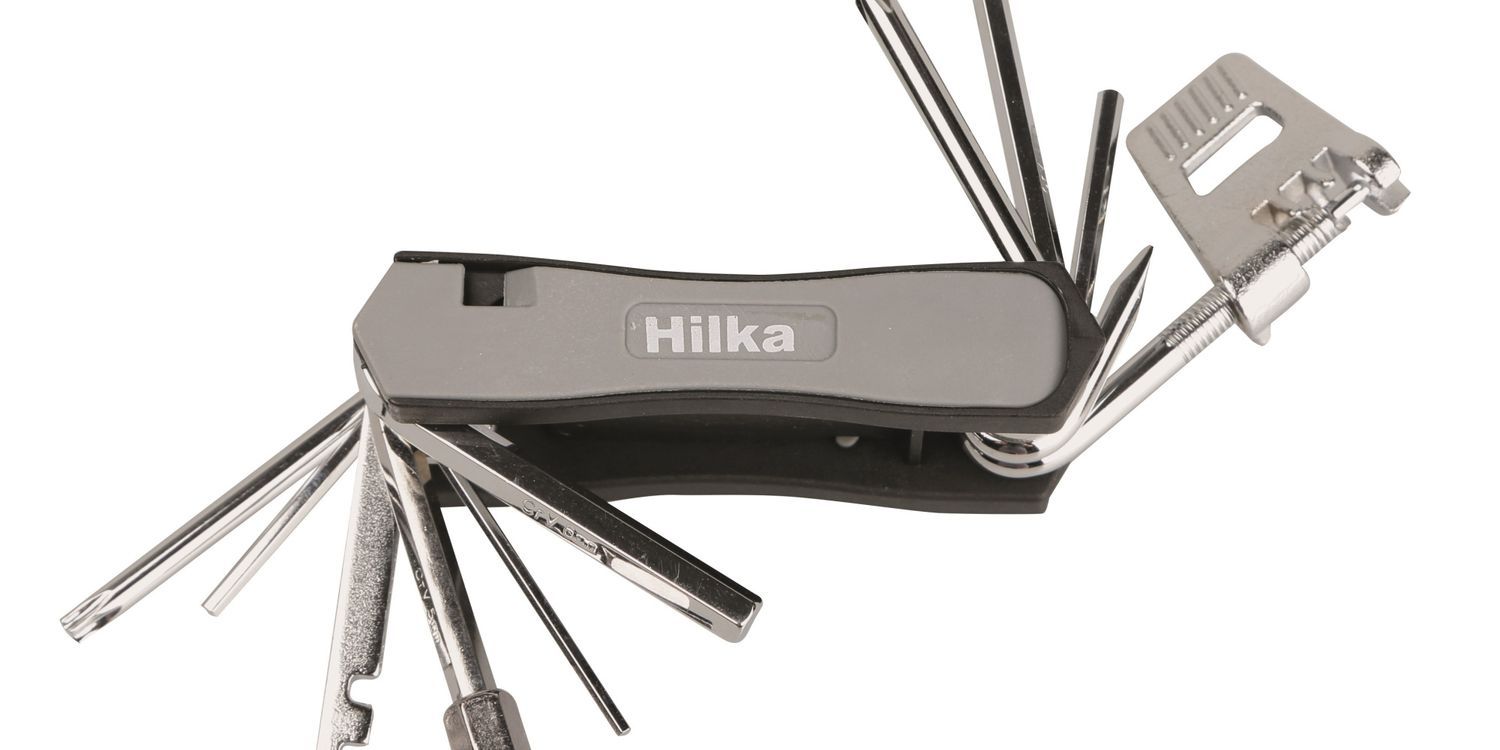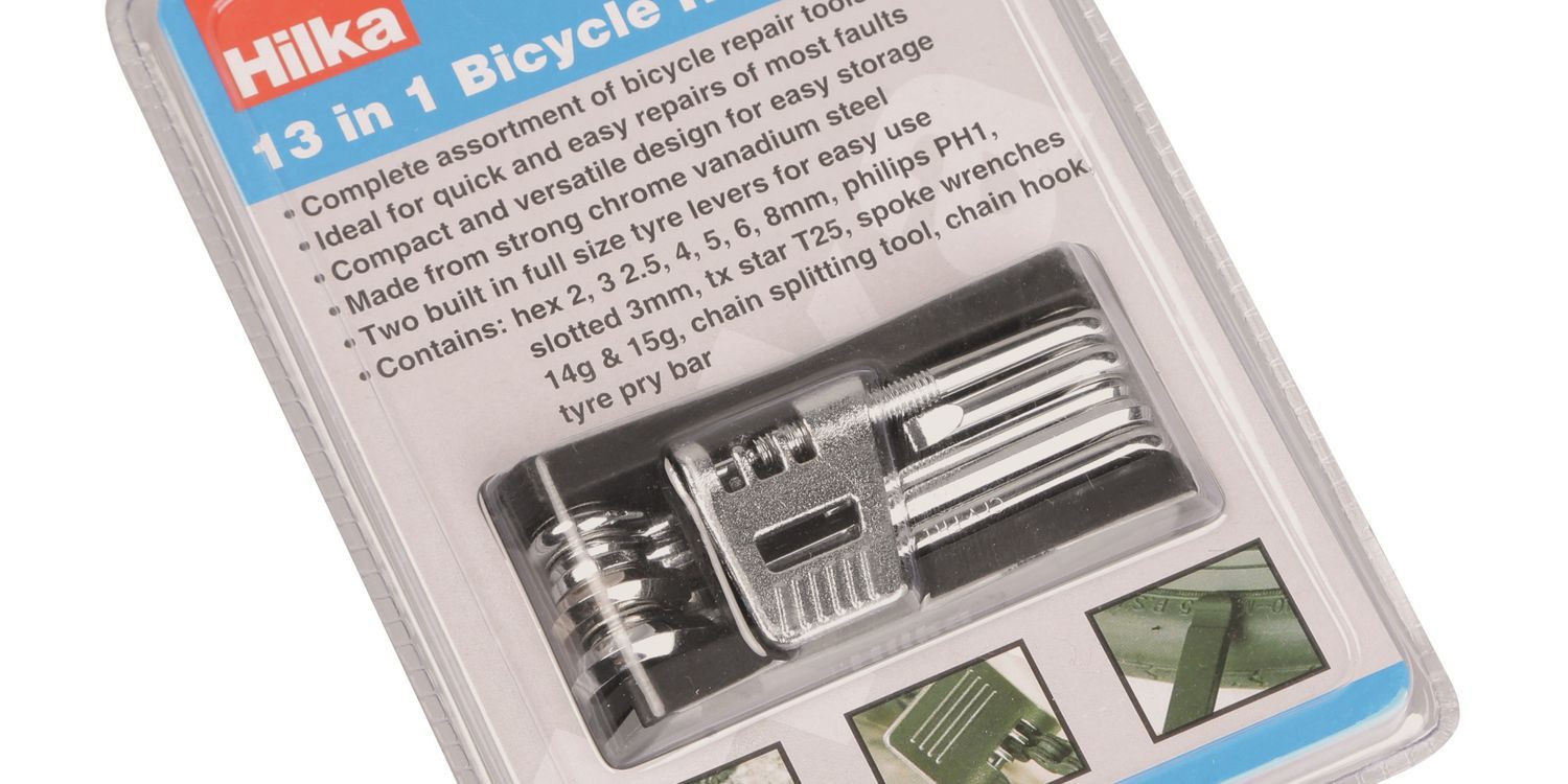 Complete assortment of bicycle repair tools that is ideal for quick and easy repairs of most faults. Compact and versatile design for easy storage and made from strong chrome vanadium steel. Two built in full size tyre levers for easy use. Contains: hex 2, 3 2.5, 4, 5, 6, 8mm, Philips PH1, slotted 3mm, TX star T25, spoke wrenches 14g & 15g, chain splitting tool, chain hook, tyre pry bar.