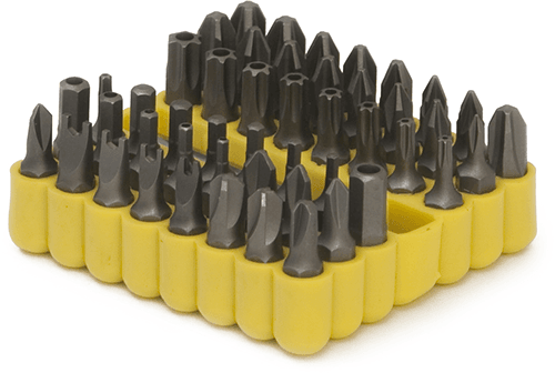 Complete with magnetic bit holder. Supplied in a robust rubber organiser.