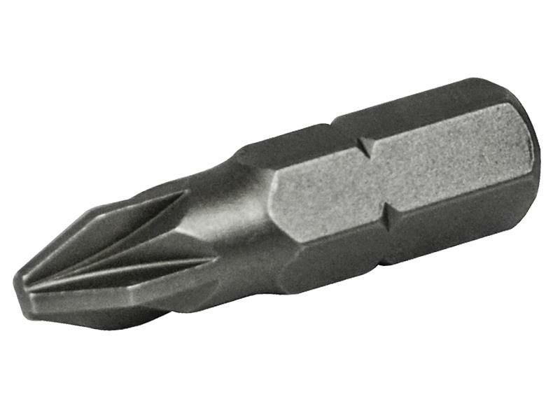 These Faithfull professional 1/4in Hex Drive Pozidriv Screwdriver Bits are manufactured from high strength, heat-treated S2 grade steel. Bits are shock and wear resistant and feature precision machined tips to provide an optimum fit, helping to prevent screw stripping and cam-out and provide a long working life.