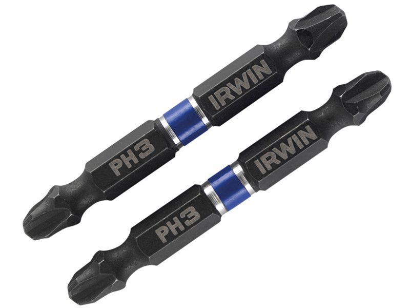 The Irwin Double Ended Phillips Impact Screwdriving Bits are specifically engineered for use in high torque Impact Drivers. They are manufactured from heavy-duty, high-grade steel and have a 3 times increased bit life compared to standard screwdriver bits.