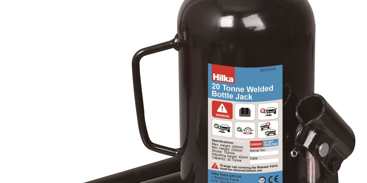 High quality bottle jack TUV/GS approved with tough welded base and polished steel ram. Welded design for increased strength and prolonged life. Serrated, heat treaded saddle for secure lifting. Min height 235mm, stroke 150mm, adjustable screw 60mm, max height 445mm. Max load 20 Tonne.