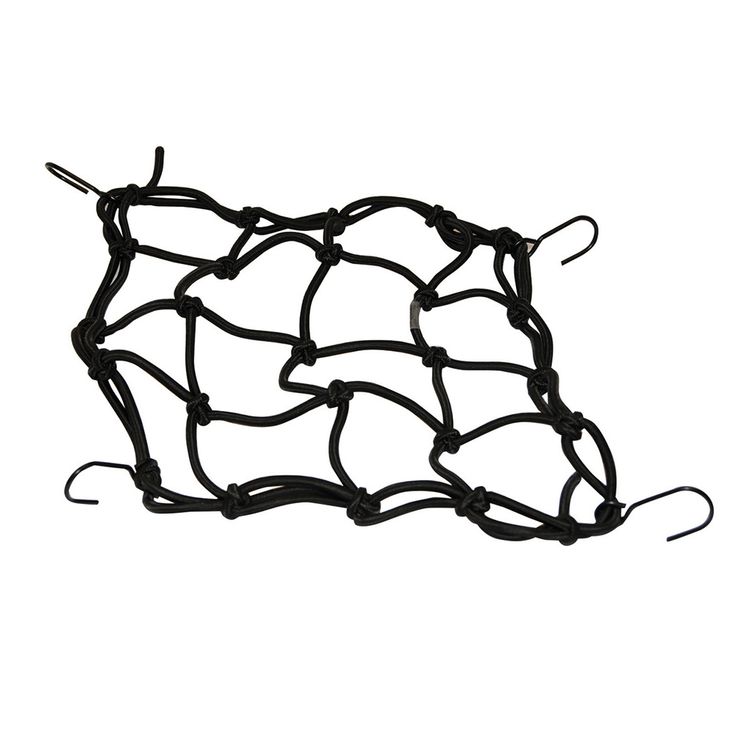 Durable 5mm thick elastic webbing keeps loose items secure during transit. 6 plastic-coated steel hooks with protective rubber caps. Ideal for securing small items on motorbikes, bicycles and backpacks.