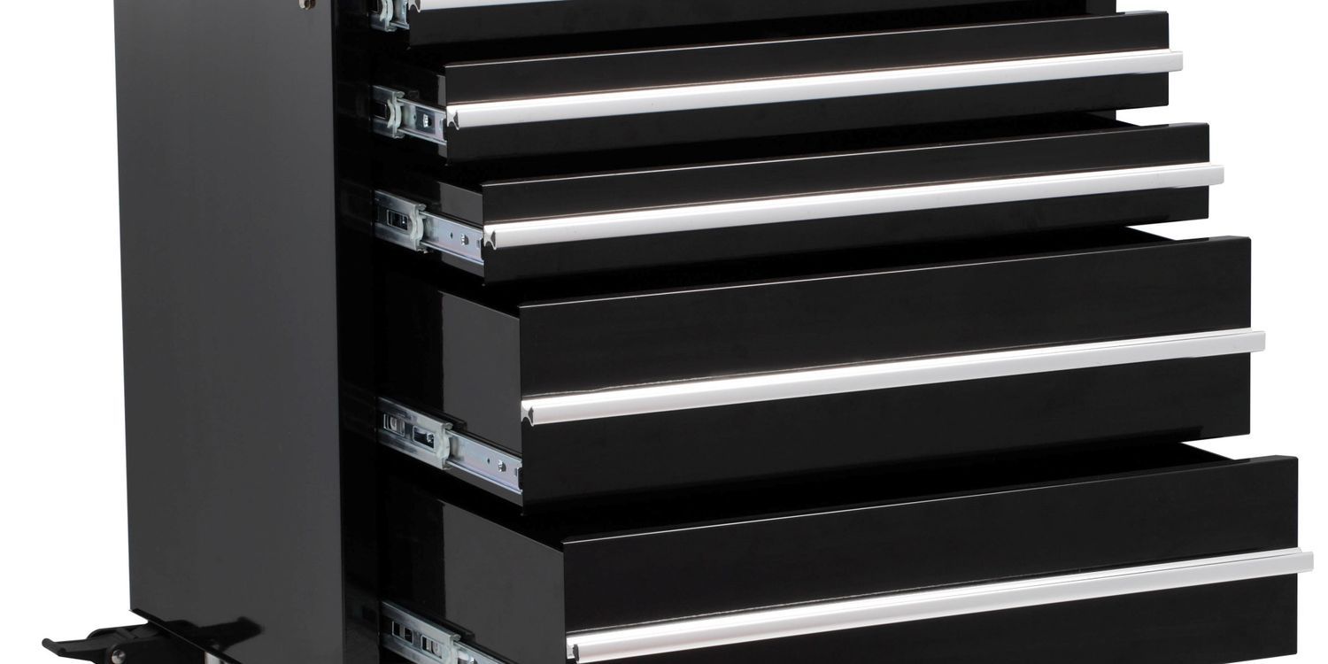 Heavy duty all steel construction with ball bearing slides with positive stop. 5" casters with reinforced cabinet base comes with protective top mat and drawer liners. Keyed locking mechanism full length aluminium drawer pulls, chrome side handles and lockable casters. Overall dimensions including castors: width 685 x depth 465 x height 795mm, 2 large drawers: 584 x 380 x 153mm, 3 medium drawers: 584 x 380 x 74mm.