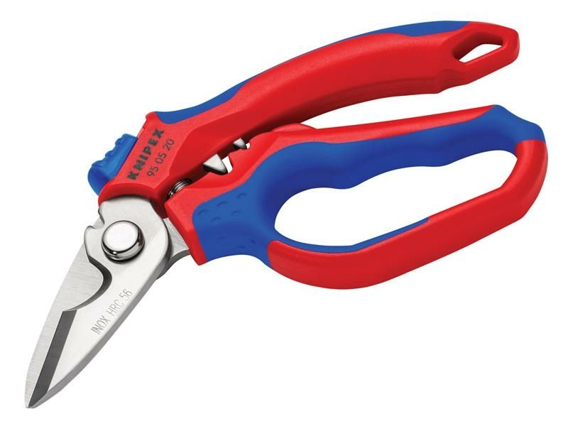 These Knipex Series 95 Angled Electricians' Shears, with precision-ground blades and fine serrations for a clean, non-slip cut, provide cutting edges made from stainless steel, the hardness of the cutting edges is 56 HRC.