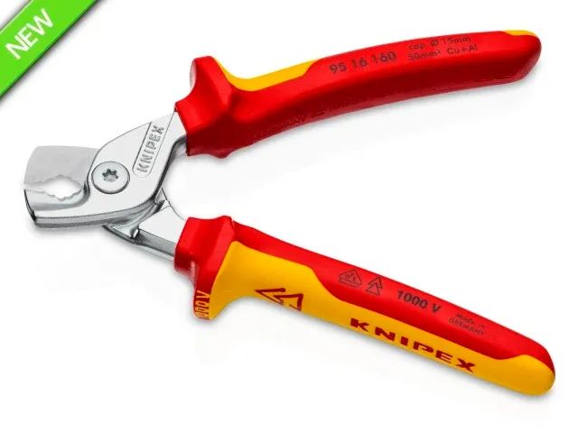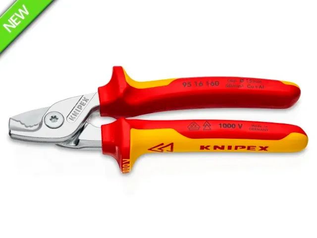Its multi-component grips are VDE tested up to 10,000V and safe for work up to 1,000V. They conform to DIN EN / IEC 60900. The ergonomic handle design provides optimal cutting feel, even for larger cable diameters. A pinch guard prevents operators' fingers being pinched.