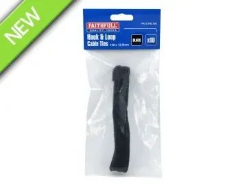 Faithfull Hook & Loop Cable Ties are ideal for managing cables, securing equipment, and organizing workspaces across a wide range of industries. Each tie measures 12.5 x 150mm and is made from high-quality nylon and polypropylene, delivering excellent strength and flexibility. With an operational temperature range of -20°C to +120°C, these ties perform reliably in demanding environments, including underwater use, where tensile strength temporarily reduces by 50% but fully recovers once dry. Engineered for performance, they offer a transverse pull force of 16KGF and a 180-degree peel strength of 3N.