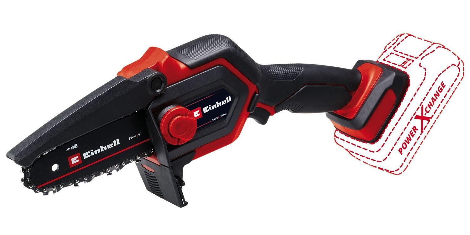 The Einhell GE-PS 18/15 Li BL-Solo Power X-Change Pruning Chain is a handy tool for trimming trees and shrubs as well as for shredding green cuttings and for smaller hewing work. Powered by the Einhell PurePOWER brushless motor. This brushless motor offers more power and longer running time than conventional carbon brush motors. After online registration, there is a 10-year warranty on the brushless motor.
