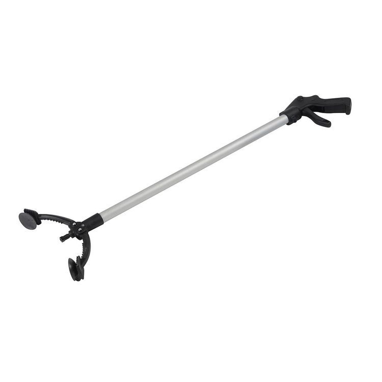 Aluminium shaft with plastic jaws and contoured pistol grip. Squeeze-activated claw with locking function. Removable rubber suction cups and serrated jaws for grip. Adjustable jaw capacity up to 200mm. For picking up without bending, and retrieving items from confined spaces.