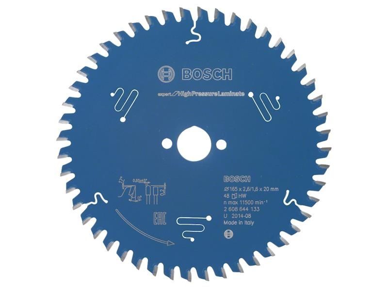 Bosch Expert for High-Pressure Laminate Circular Saw Blade. The Extra Hard MicroteQ teeth are manufactured in-house by Bosch and consist of durable carbide grains for high performance. HLTCG (High-Low Triple Chip Ground) teeth make the blade robust for working with abrasive materials. Anti-vibration slots provide particularly smooth cutting, considerably less noise and significantly reduced vibration.