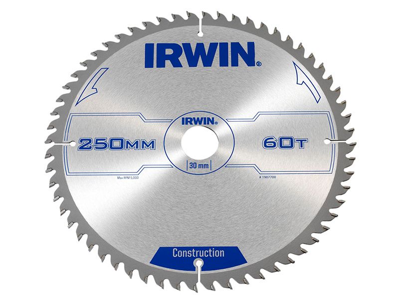 The Irwin General Purpose Table & Mitre Saw Blade with construction grade tungsten carbide tips that retain their edge for longer and are resharpenable. Expansion slots help to dissipate heat and prevent warping. The blades have a fully hardened plate that runs truer for longer and with more accuracy.