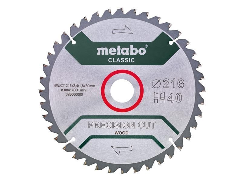 Metabo Precision Cut Wood Circular Saw Blade for clean cutting results in ripping or cross cutting. Suitable for hard wood and plywood, untreated chipboards, coated or veneered, MDF, composite materials. Suitable for: KS 216 M Lasercut / KGS 216 M / KGSV 216 M / KGSV 72 Xact / KGSV 72 Xact SYM.