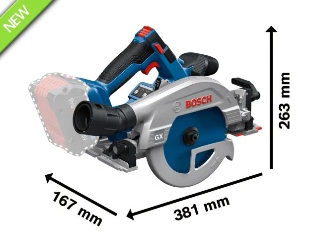 The GKS 18V-57-2 GX Professional comes with Stop Control, where the tool automatically recognises the end of a cut and then switches off, RPM adjustment, and ECO mode, as well as KickBack Control and protection against overheating. The flexible saw blade design is ideal for near-wall cutting and there is an LED light which clearly illuminates the cutting line. Collecting dust is easy, thanks to the integrated click & clean adaptor compatible with all vacuum solutions.