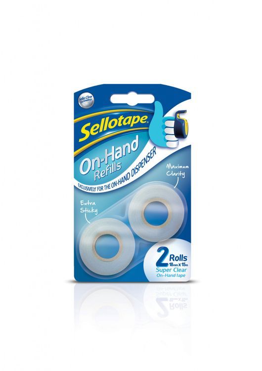 • The refills for the tape dispenser by Sellotape are extra sticky and super clear. They fit perfectly in the on-hand dispenser which leaves both hands free for wrapping and crafting while always keeping the sticky tape ready at hand.
