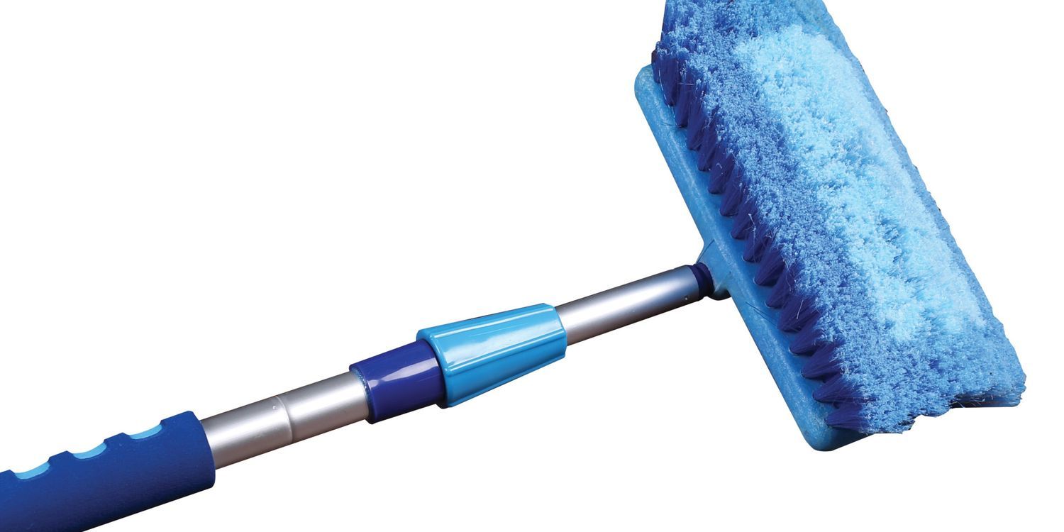 Water fed quality cleaning brush extends to 2m. Perfect for cleaning in hard to reach places at home or on a vehicle. Strong, lightweight aluminium handle extends to 2m. Soft cushioned grips add extra comfort and also insulate from the cold water running through the handle. Convenient water on/off switch with soft feathered bristle tips to ensure cleaning on all surfaces. Length without extension is 1.3m.