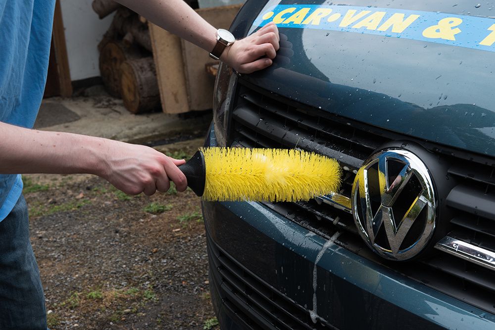 Extra-long to clean into grilles and other openings. Suitable for steel and alloy wheels. Soft-grip handle.