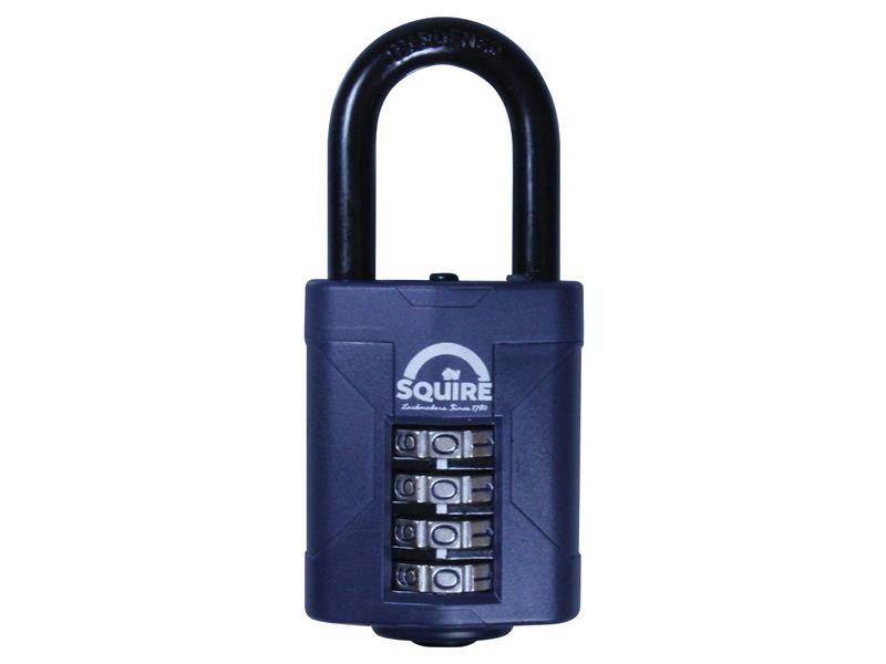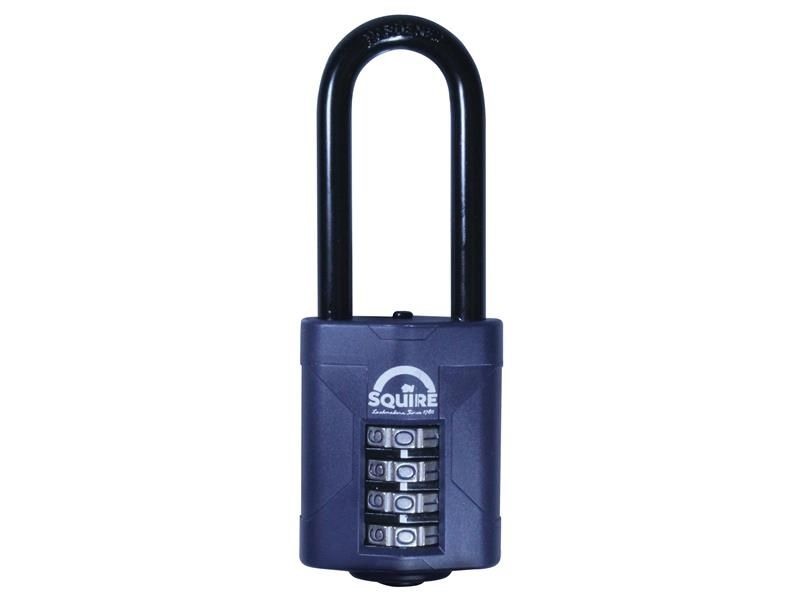 The Squire CP Combination Padlock delivers heavy-duty security and there are no keys to lose. The die-cast alloy lock body has a dual compound protective cover for high corrosion resistance and excellent weather protection. All locks can be coded and re-coded as required and they can be coded alike, so one code opens several locks.