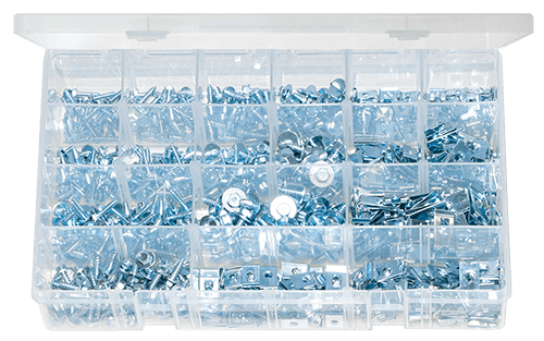 8 x Captive Washer Screws: 8 x 1/2" (4.2 x 13 mm), 8 x 3/4" (4.2 x 19 mm), 10 x 1/2" (4.8 x 13 mm) ,10 x 3/4" (4.8 x 19 mm), 12 x 1/2" (5.5 x 13 mm), 12 x 3/4" (5.5 x 19 mm), 14 x 1/2" (6.3 x 13 mm), 14 x 3/4" (6.3 x 19 mm).