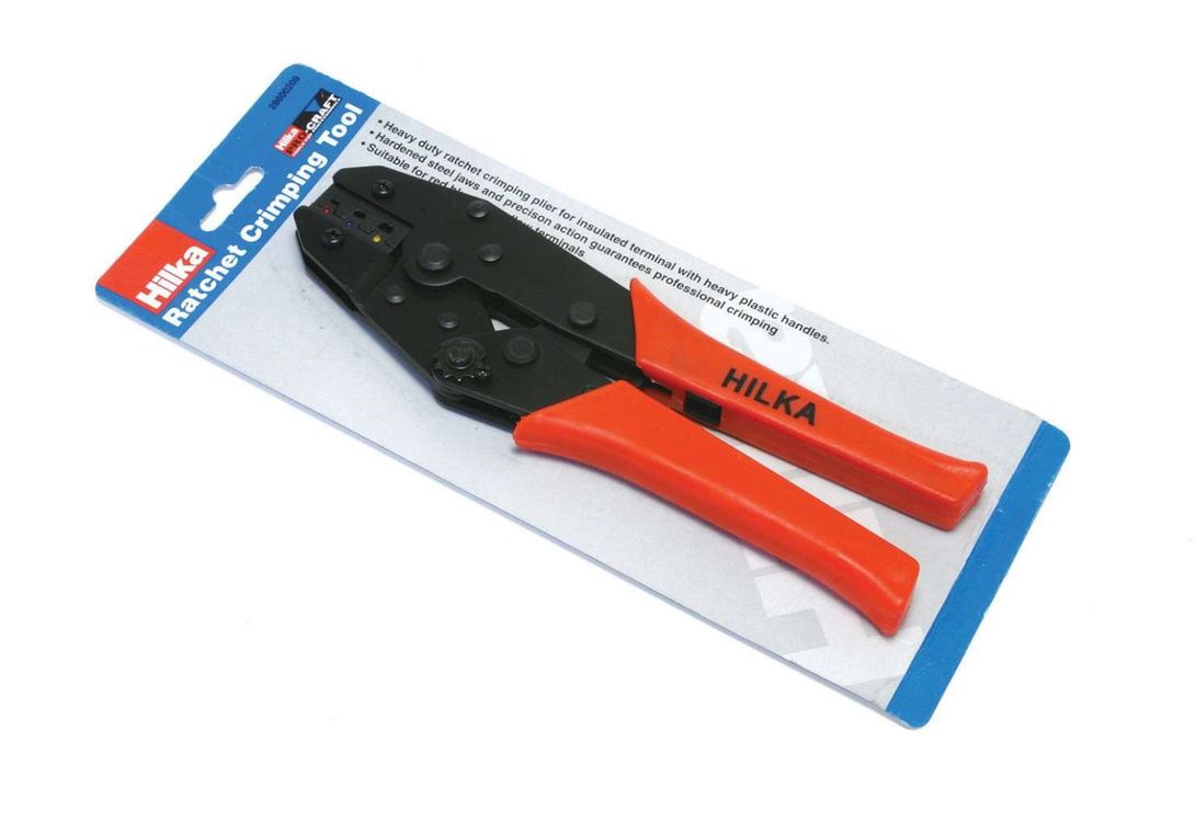 Heavy duty ratchet crimping plier for insulated terminal with heavy plastic handles. Hardened steel jaws and precision action guarantees professional crimping. Suitable for red, blue and yellow terminals. Ratchet action is adjustable by loosening the locking screw, resetting the wheel and replacing the locking screw. Cable sizes: Red - 1.5mm² (22-16 A.W.G.), Blue - 2.5mm² (16-14 A.W.G.), Yellow - 4.6mm² (12-10 A.W.G.)