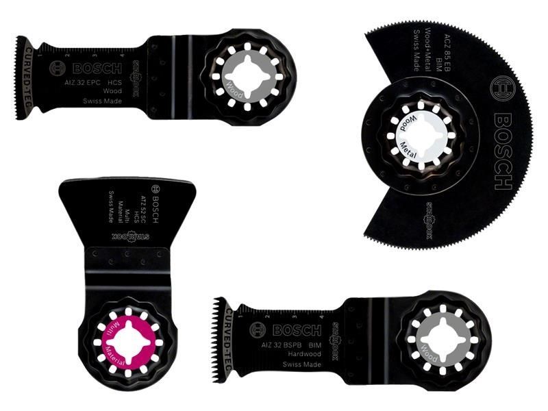The 4 Piece Bosch Floor and Installation Set includes accessories for sawing, plunge cutting and scraping various materials. The Starlock mount provides optimum power transfer and convenient blade change within 3 seconds. The mounting system produces the highest power transfer due to a 3-dimensional tight-fitting connection between machine and accessory.