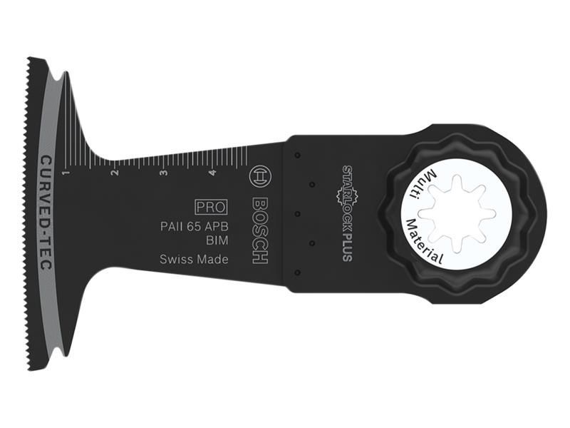 Bosch PRO PAII 65 APB Plunge Cut Blade for cutting wood, soft metal, and plastic. Made from Bi-Metal for strength and endurance. Its Curved-Tec design is ideal for tear-free plunge cuts and its increased length helps it cut faster and ensure maximum efficiency on the job site.