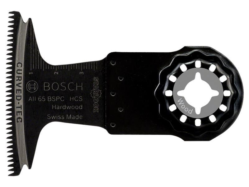 The Bosch Starlock AII 65 BSPC Blade delivers wide and clean cuts in hardwood. Its flat design reduces wobbling to enable a controlled cut due to direct power transfer. The blade’s rounded cutting edge (Curved-Tec) makes precise and smooth plunge cuts.