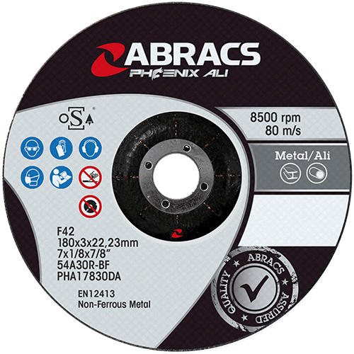 Made to OSA safety standards and marked with EN12413. For use on aluminium, mild steel, copper and non-ferrous metals.