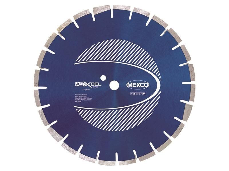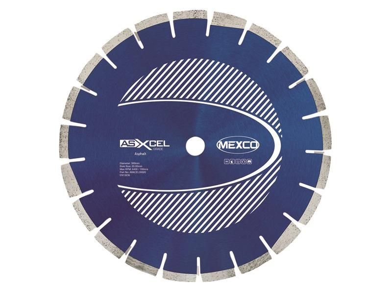 The MEXCO Asphalt XCEL Grade Diamond Blade is a superior diamond cutting blade. Developed to meet the needs of contractors and builders who cut on a regular basis and demand a superior cut every time. Offers fast stock removal and excellent performance when used for cutting the most abrasive of applications such as Asphalt, green concrete and cement screed.