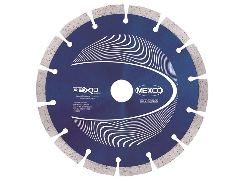 MEXCO GPX10 Concrete Diamond Blades have been specifically designed for cutting a wide range of general purpose building materials. The GPX10 offers a cost effective solution for the user who requires a diamond blade which can cope with the cutting of the most widely used non-abrasive building materials.