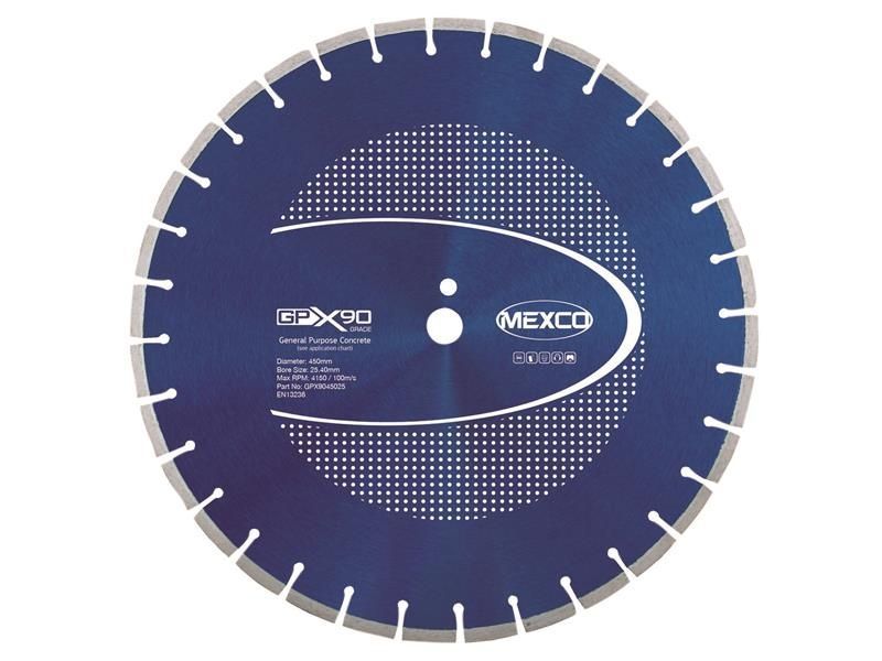 MEXCO GPX90 Concrete Diamond Blades provide the user with excellent cutting characteristics in the majority of non-abrasive construction products used in the UK.