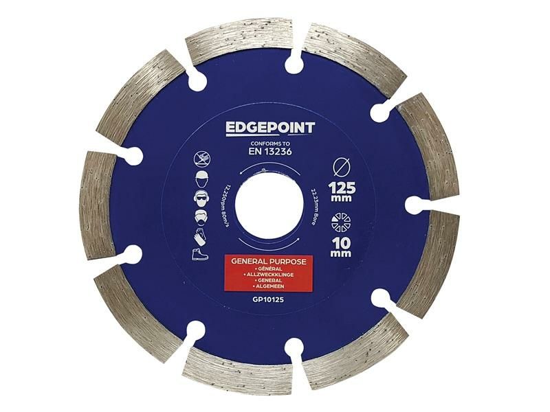 Whether you are tackling a small DIY project or a large-scale construction job, the EdgePoint GP10 General-Purpose Diamond Blade is a versatile tool that is widely used for cutting a variety of materials. Manufactured to EN 13236 quality standard, this diamond blade is designed with high-quality diamond segments that provide excellent cutting performance and durability.