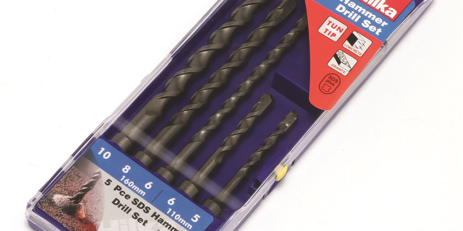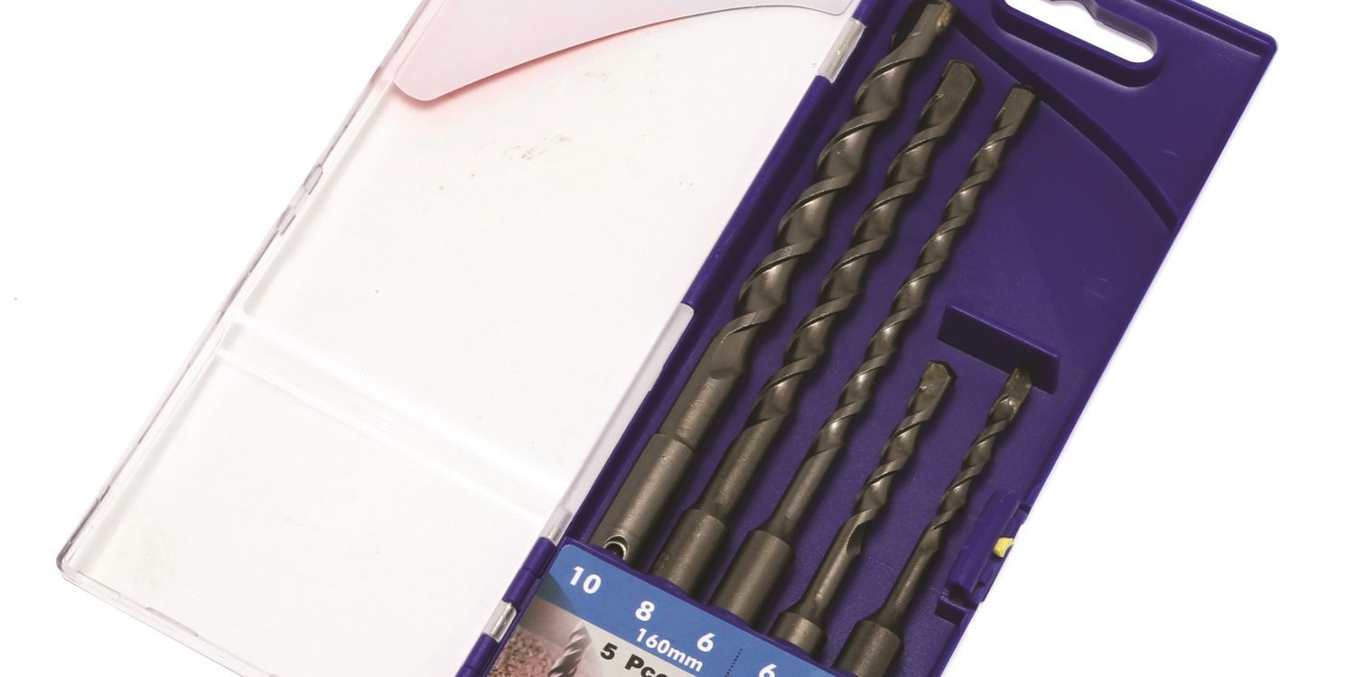 High quality SDS drills in plastic carrying and display box. Tungsten carbide tip with carbon steel body, hardened and tempered. Sizes: 5 x 110, 6 x 110, 6 x 160, 8 x 160, 10 x 160mm.