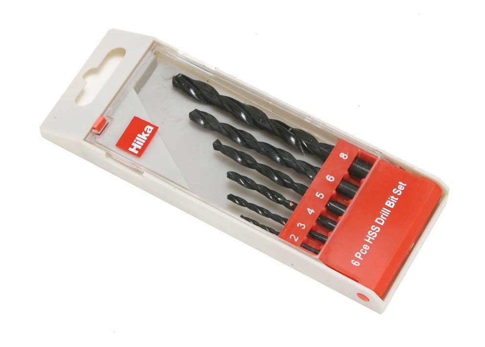 High quality HSS drills sizes: 2, 3, 4, 5, 6, 8mm. Black finish in plastic display case.