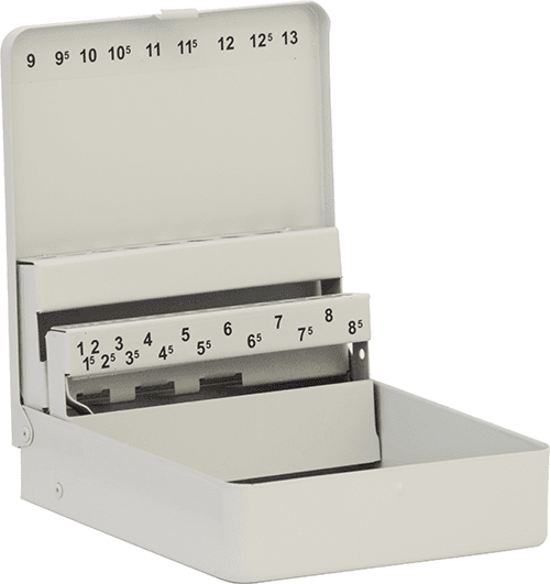 Holds 25 Drills from 1 - 13 mm in 0.5 mm steps.