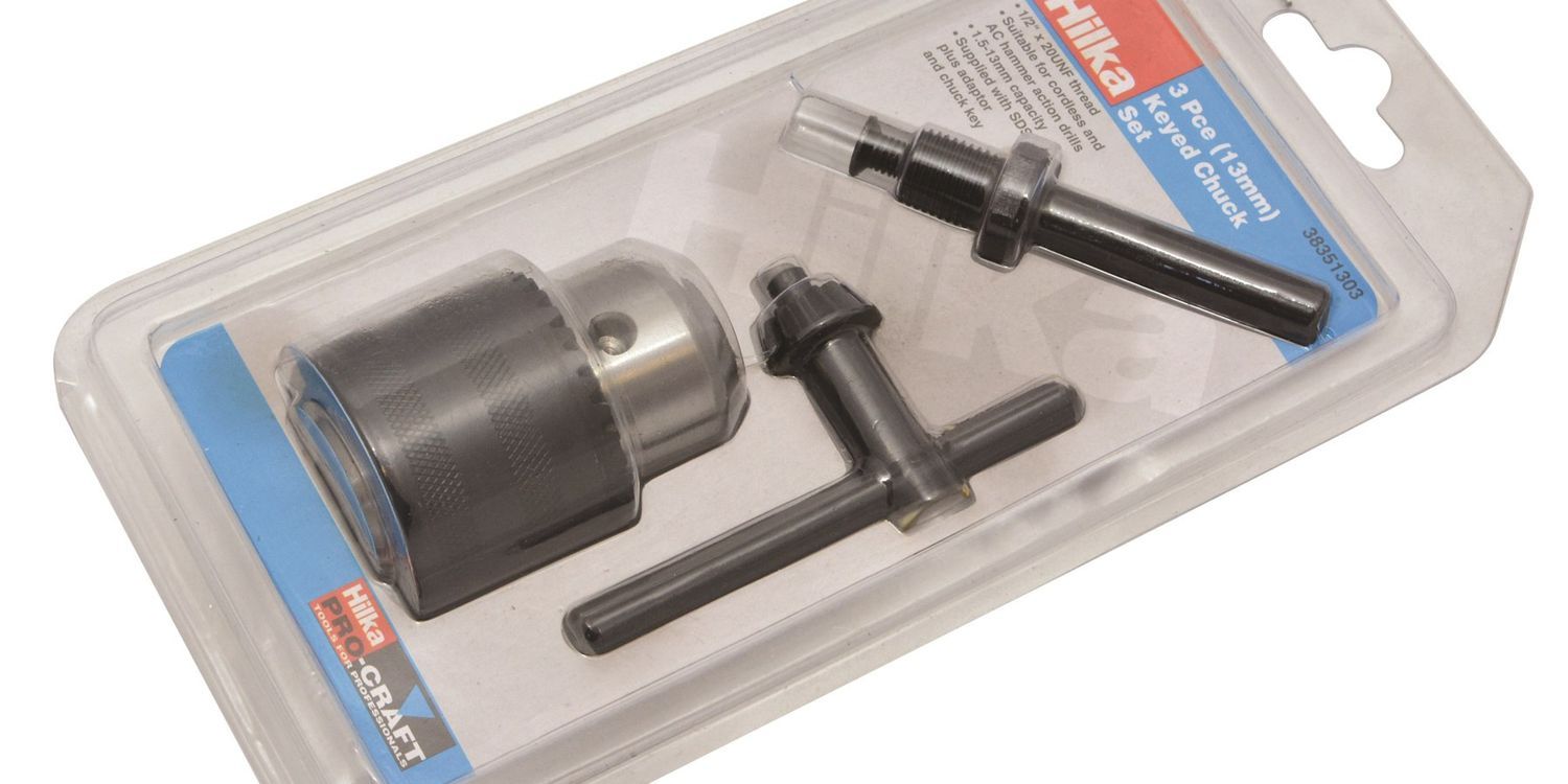 1/2" x 20 UNF thread. Suitable for cordless and AC hammer action drills. 2-13mm capacity. Supplied with SDS plus adaptor and chuck key.